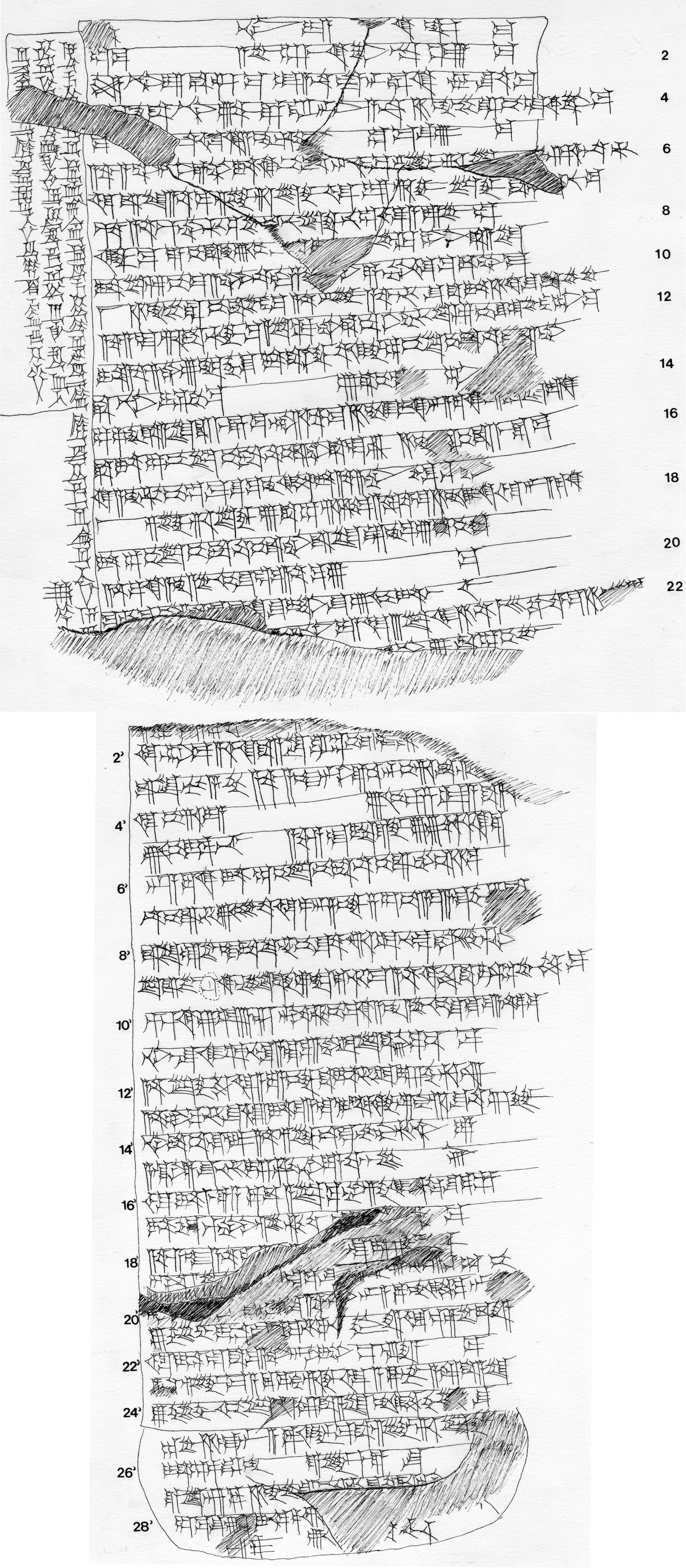 20’– 31′ annītam āpu[lšu-ma], umma šū-[ma], “adirtī-ma aqabbī. šumma-man ištēt awā[tum], Īda amminim-man luḫšeḫ? idu[m š]a mātikunu sisû u ereqqū, u idum ša mātim annītim eleppū-ma. ana zīm-ma kuprim u napṭim ālam šâtu luḫšeḫ, ulliš ālam šâtu amminim aḫšeḫšu? ap-pūḫat Īdi mimma ša Zimrī-līm išapparam, ešemmē-šu.” elī Īdi Ḫammu-rāpi qātēšu uddanni[n], umma šū-ma, “inūma …… [……] Īda ul uwaššar.”